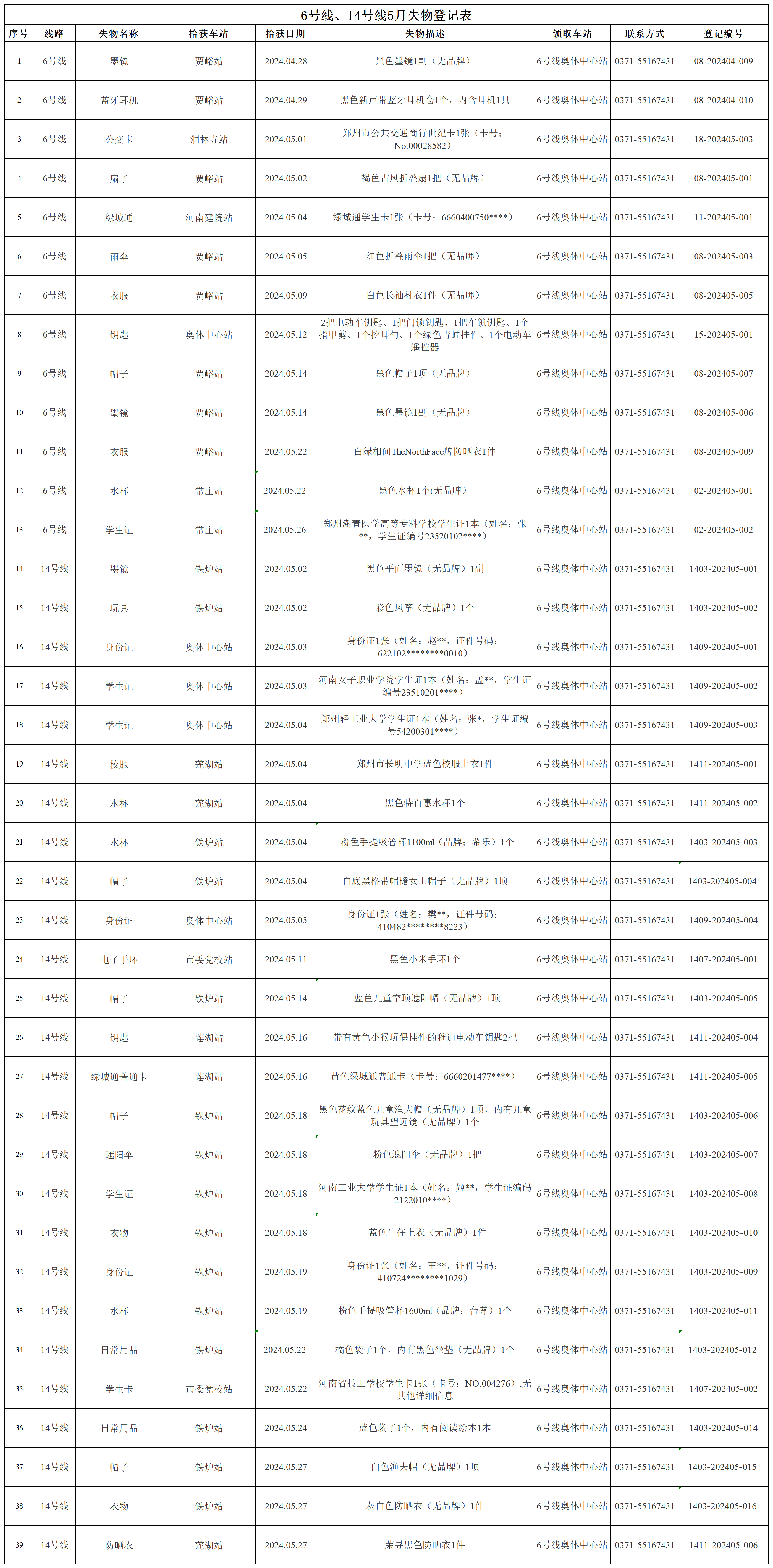2024年4月28日—2024年5月28日車(chē)站無(wú)人認領(lǐng)失物情況