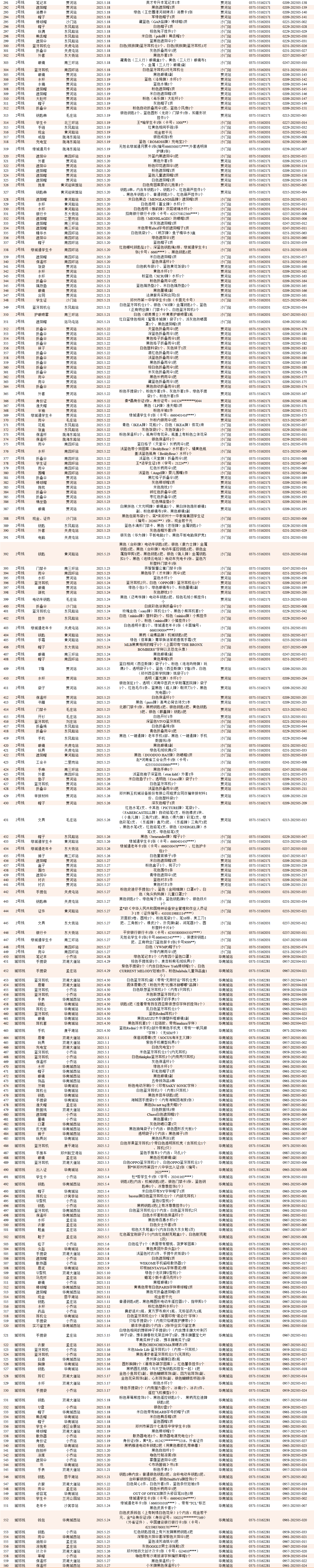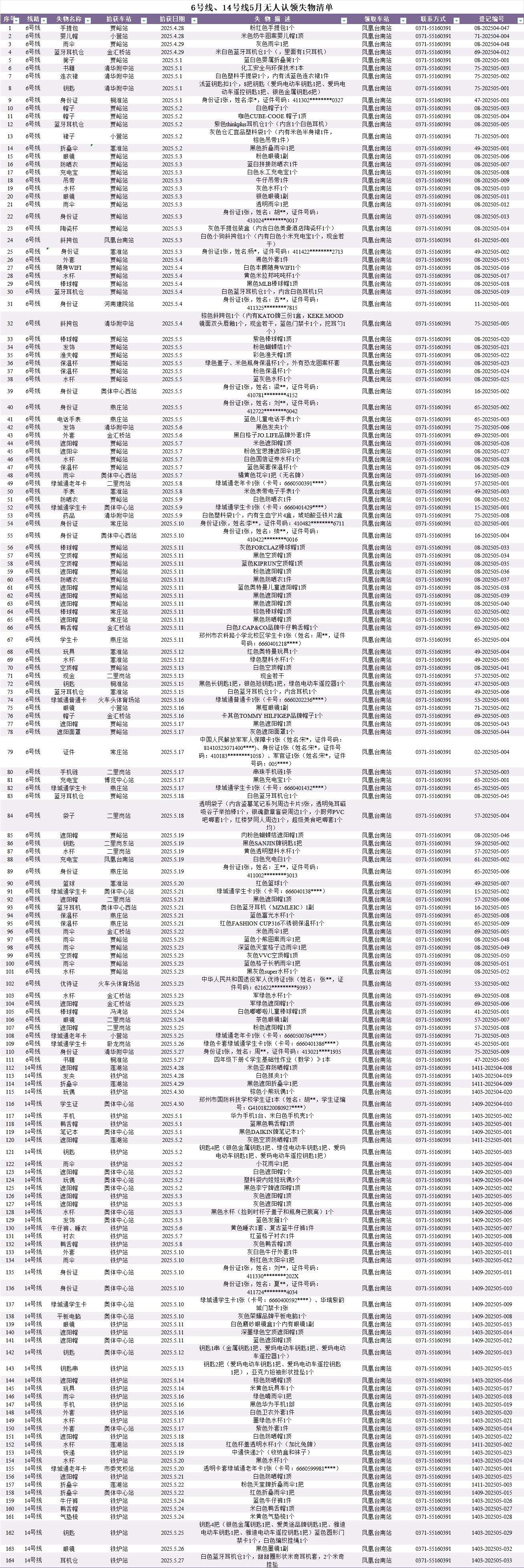 2025年4月28日—2025年5月28日車(chē)站無(wú)人認領(lǐng)失物情況